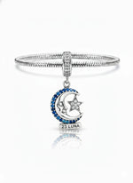 Adornado con circonitas azules y blancas , este diseño evoca el brillo sereno del cielo nocturno y la conexión eterna entre la luna y las estrellas.